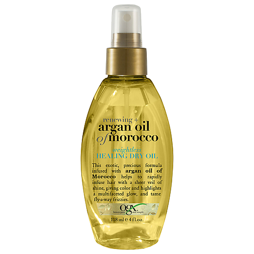 Mend split ends and eliminate frizz with OGX Renewing + Argan Oil of Morocco Weightless Healing Dry Oil Spray. Ideal for all hair textures, moisture levels and types, the hair-smoothing oil mist helps tame flyaways. Formulated with a hydrating blend of rich cold-pressed Moroccan argan oil, it helps leave hair feeling smooth, soft and shiny. Lightweight hair mist also helps to penetrate the hair shaft for hair that looks and feels absolutely radiant. Plus, the citrus-fresh, floral-green and woody scent makes curly hair care an all-around sensory experience and leaves locks with an irresistibly good smell. Paraben-free with sulfate-free surfactants, this anti-frizz dry oil is gentle on hair while helping improve strength and elasticity.